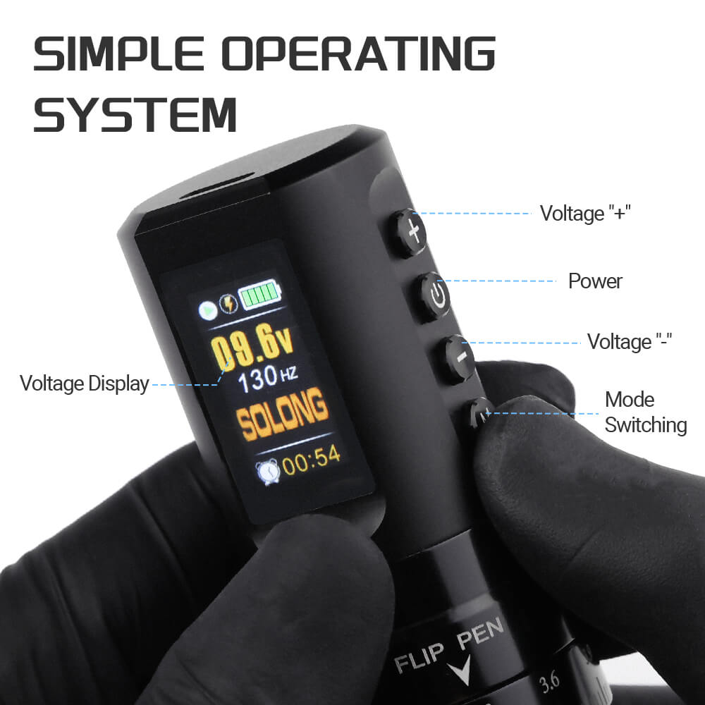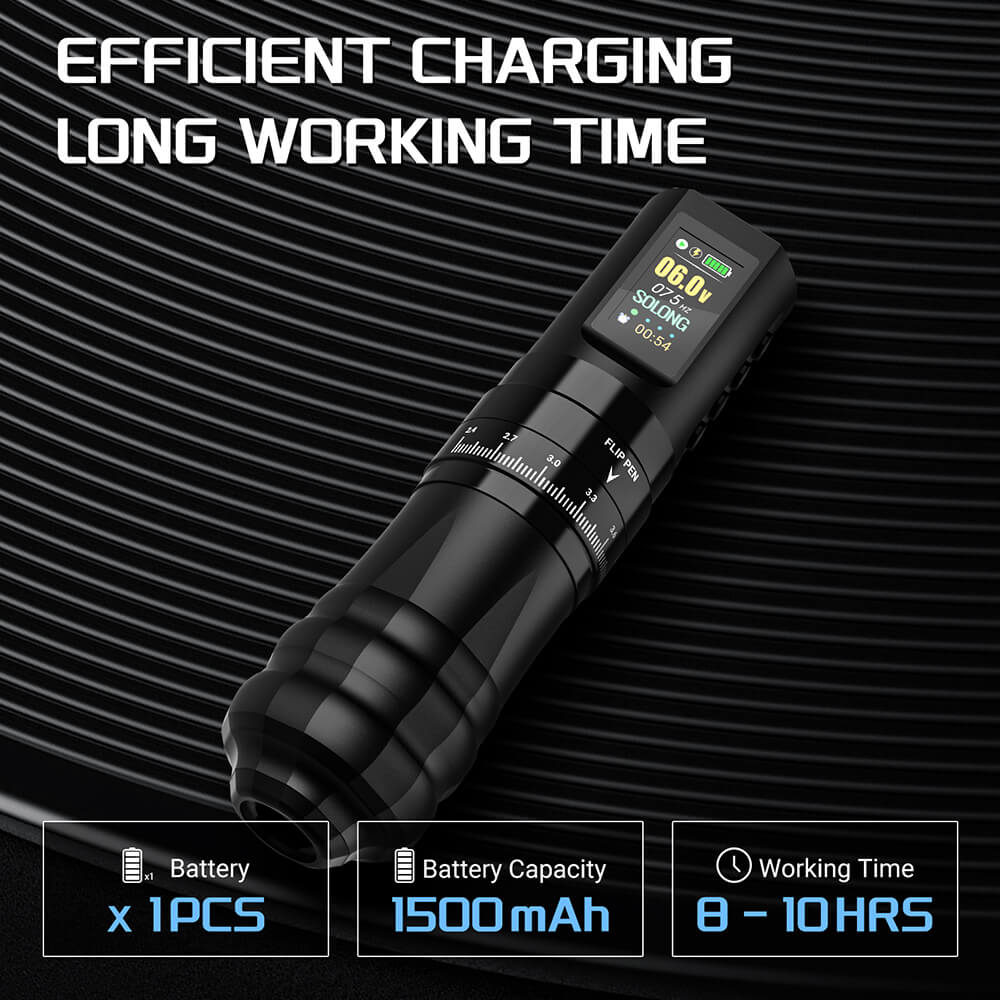This complete wireless tattoo kit includes a lightweight, precision-crafted machine made from durable aluminum alloy. Powered by a long-lasting 1800mAh battery, it offers 8–10 hours of continuous use, with adjustable voltage from 5V to 12V.